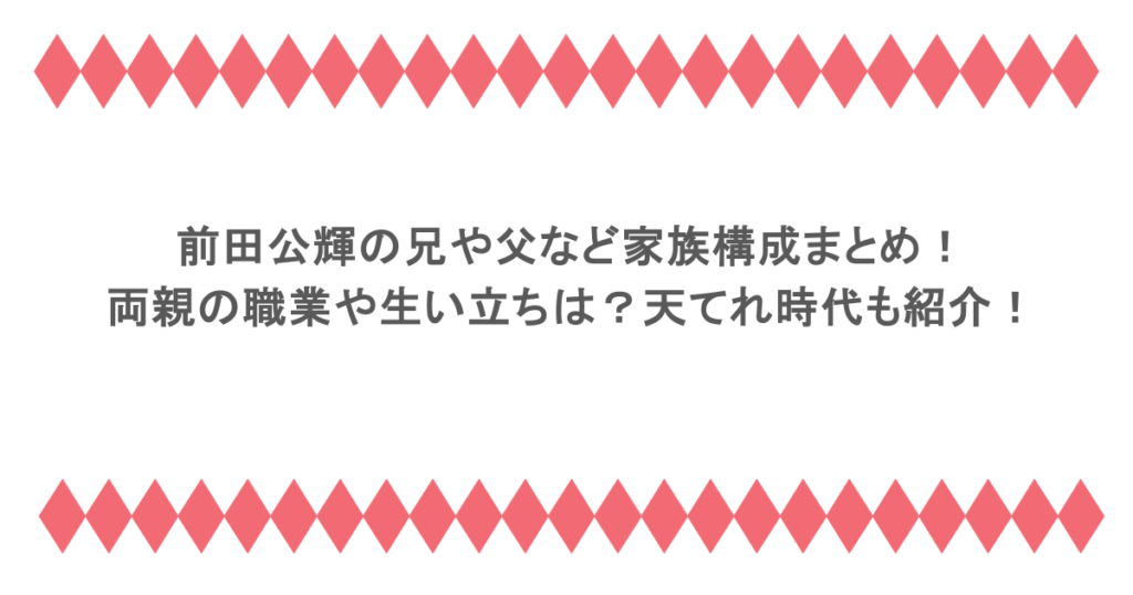 前田公輝の兄や父など家族構成まとめ!両親の職業や生い立ちは?天てれ時代も紹介!